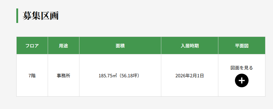 | こだわり条件 | 個別空調, OAフロア, トイレ男女別 |