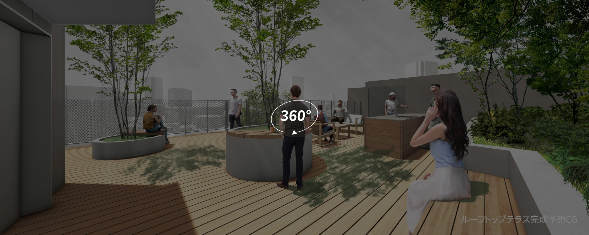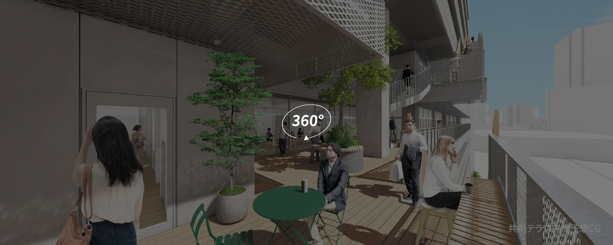 共用ラウンジ、貸し会議室、共用テラス、ルーフトップテラス等の共用スペースを設置。基準階約300坪。
